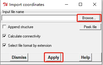 点击菜单栏File-Import-Coords,载入上一步生成的.crd结构文件。可通过View-Atom type,设置分子的表现形式。