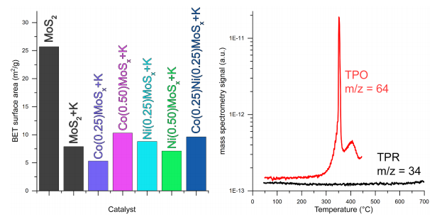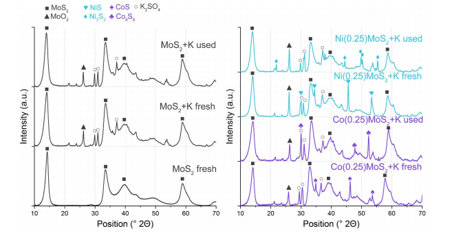 在Gernot Pacholik等人的研究中,采用原位XPS对MoS2基催化剂进行了系统分析,结合XRD、N2吸附、程序氧化(TPO)和程序还原(TPR)等表征方法,评估了催化剂在CO2加氢中的性能。研究发现,催化剂对硫污染物的耐受性较强,这对于直接利用工业烟气(无需净化)具有重要意义。