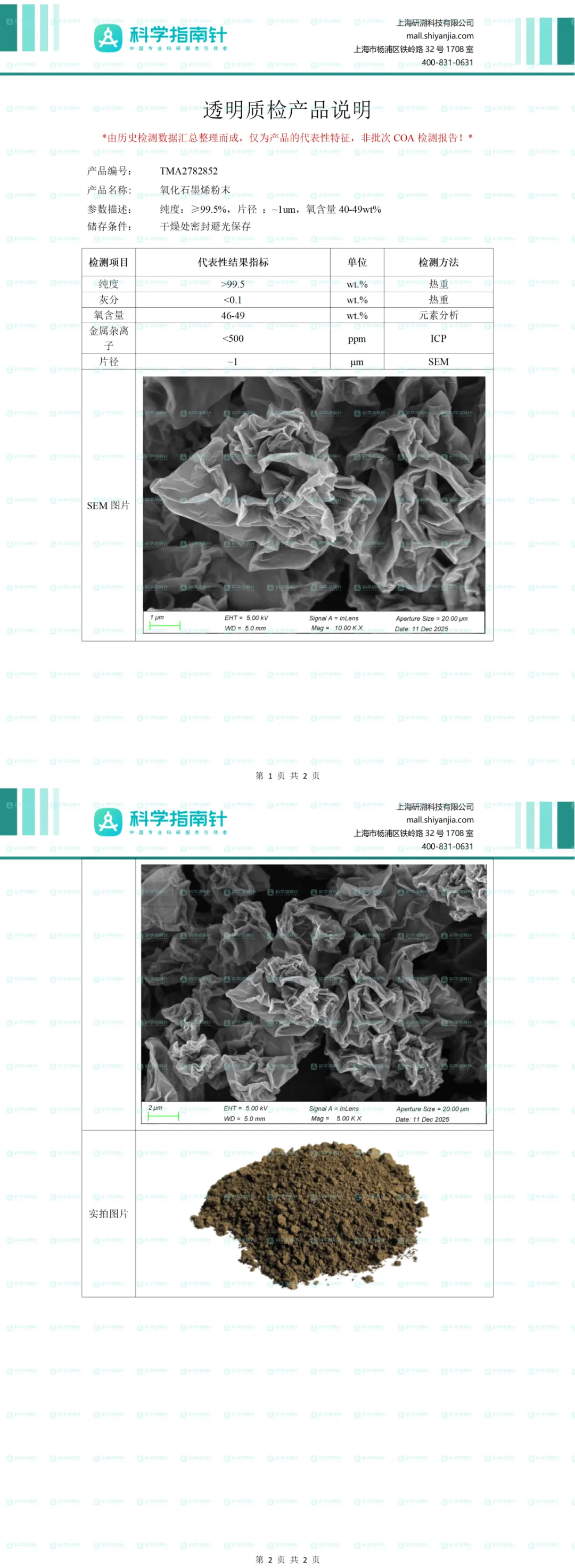 ✔ 支持查看 电镜 / 粒径 / 光谱等真实检测数据