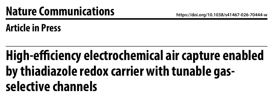 技术创新:首创噻二唑氧化还原载体与气体选择性通道耦合设计,实现分子工程与界面调控的双重突破。