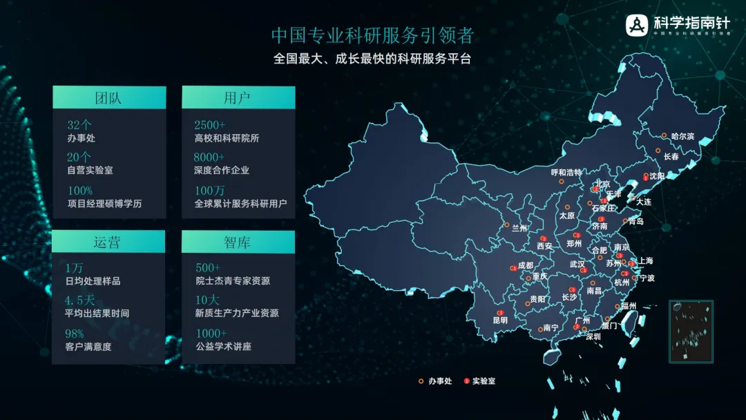 成立于2014年,科学指南针已成长为第三方分析测试机构TOP1,拥有4000+服务项目,全国布局32个办事处与20个自营实验室,累计服务2500+高校院所、8000+企业客户,获得100万科研工作者的信赖。这些积累,让公司持续增长,也让我们有能力把更多价值回馈给团队。